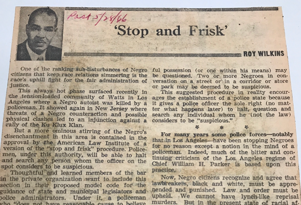 I had always assumed Carl Rowan had achieved that distinction in the summer of 1965 when he left the Johnson Administration and began writing three columns a week for the Chicago Daily News syndicate. A year earlier, however, Wilkins signed a contract with the Register and Tribune Service, owned by the Cowles Media Company, and by January 1965 his column appeared weekly in more than 100 newspapers, including dailies in every major metropolitan area in the North. I discovered Wilkins’s syndication contract – and all of his columns – in his personal papers at the Library of Congress in Washington, D.C.
