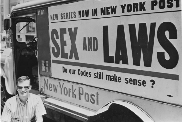 Featured image: Randolfe Wicker, posing with a New York Post delivery truck, arranged for a Post reporter to interview gay men in December 1965 for a special series of articles. Courtesy of Randolfe Wicker.